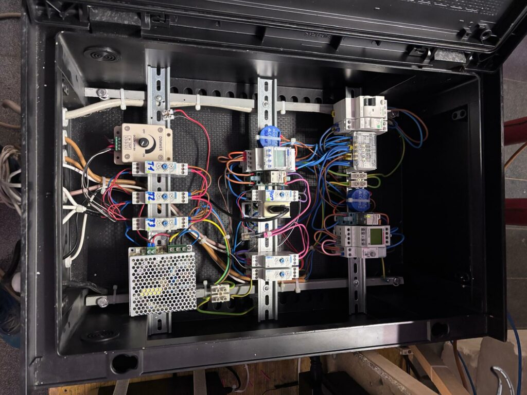 Il cuore tecnologico del presepe è il sistema di illuminazione che gestisce le fasi della giornata (alba, giorno, tramonto, notte) e gli effetti dinamici come il fuoco che arde, creando un’atmosfera suggestiva e mutevole.